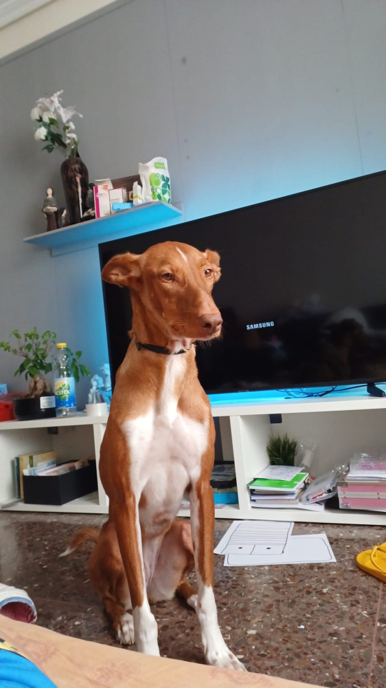 NIKA es una podenca buenísima. Se porta muy bien en casa, no rompe nada, no ladra, convive con gatos y con niños, es sociable con otros perros y le encanta jugar en el parque. Nika necesita con urgencia una adopción o acogida responsable .